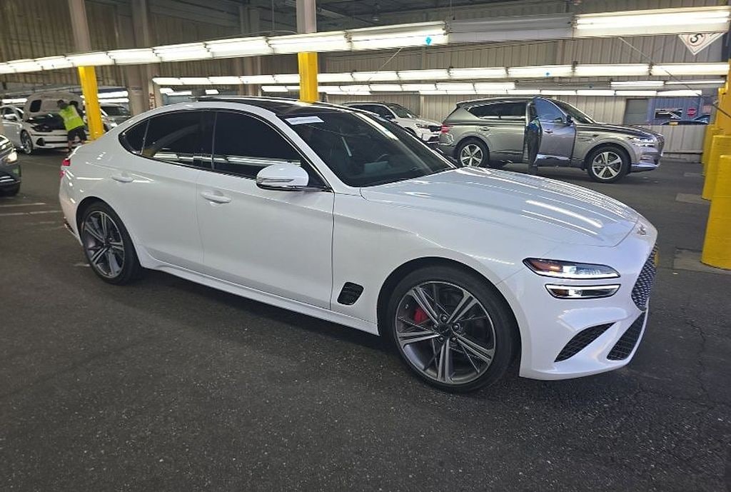 Equipped with: Heated & Cooled Seats, Leather Seating Surfaces, Leatherette Wrapped Lower Instrument Panel, Integrated Memory System, Brembo Braking System, 10.25" Navigation System, Apple CarPlay and Android AutoTM, Lexicon Premium Audio, Wireless Phone Charger, Smart Cruise Control, Intelligent Speed Limit Assist, Highway Driving Assist, Forward Collision-Avoidance Assist, Lane Keeping Assist, Lane Following Assist, Driver Attention Warning, Blind-Spot Collision Warning, Rear Cross-Traffic Collision-Avoidance Assist, Rearview Camera, Safe Exit Warning, Rear Occupant Alert, Parking Distance Warning - Forward & Reverse, Power-folding ECM Outside Mirrors w/ Genesis Logo Puddle Lamps, 19-inch Sport Alloy Wheels, Dark Chrome Grille & Daylight Opening Trim, Sport Aluminum Trim.