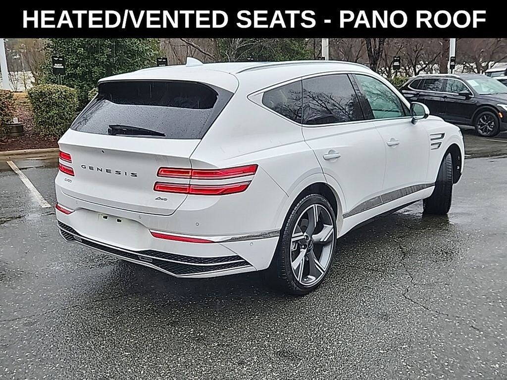 Equipped with: Heated & Ventilated Front Seats, Heated Steering Wheel, Heated Rear Seats, Leather Seating Surfaces, Leatherette Wrapped Upper Instrument Panel, Power Cushion Extension, Bolster, and Ergo Motion w/ Massage (Driver), 3-Zone Climate Control, Mood Curator, Manual Rear Door Sunshades, Smart Cruise Control, Highway Driving Assist, Surround View Monitor, Remote Smart Parking Assist, Head-Up Display, 27" OLED Instrument Cluster & Navigation, Apple CarPlay & Android AutoTM, Bang & Olufsen Premium Audio, Active Noise Control, Wireless Device Charger - Front, Panoramic Sunroof, Power Hands-Free Smart Liftgate w/ Auto Open, Power-folding ECM Outside Mirrors w/ Genesis Logo Puddle Lamps, Forward Collision-Avoidance Assist, Lane Keeping Assist, Lane Following Assist, Driver Attention Warning, Forward Attention Warning, Blind-Spot Collision-Avoidance Assist, Blind-Spot View Monitor, Rear Cross-Traffic Collision-Avoidance Assist, Parking Distance Warning, Parking Collision-Avoidance Assist, Safe Exit Assist, Advanced Rear Occupant Alert, 22-inch Alloy Wheels.